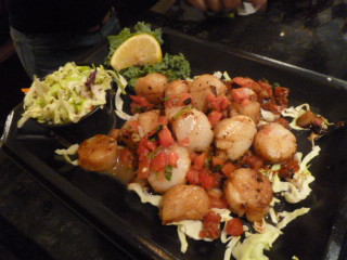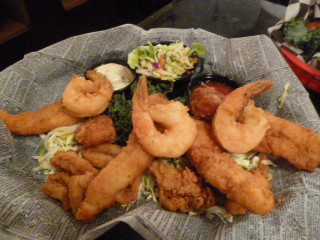 Over a couple of years now, we have dined at several of the Click-It Hot Restaurants and found the seafoods and fish to be in excellent taste and value. We just arrived home from Traditions Square Click-It Hot and from the shrimp, scallops, cod fish, Calamari (squid) their special spicy cole slaw, and mahi, mahi we are stuffed, but happy (we took home a good amount for tomorrow) campers! We also started off our meal with a solid cup of both corn and shrimp chowder, and clam chowder. Frankly, quite spectacular and I don’t offer that comment lightly! Do we recommend Tin Fish, a rousing “yes!”
