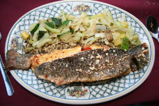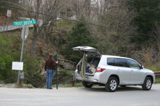 On the Beaverkill River up in the Catskill Mountains! Brown Trout have taken over what for millenniums was a Brook Trout River. But, that’s OK, they fight great and are a terrific sport fish from Germany! And Brown Trout do taste very nice!Beaverkill River fly fishing action!Note the street sign: Brook Trout Road. We fished the Beaverkill and always stopped anywhere we thought we could cast to brookies, my favorite native species!Enjoying a trout lunch in the Catskill Mountains! Note the Beaverkill River out the window!