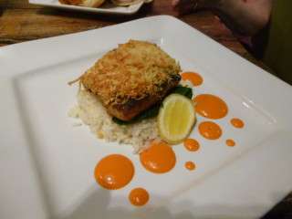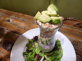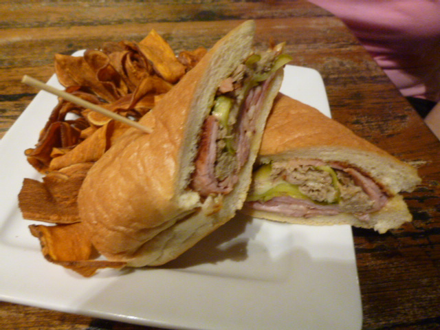 Having lived in the Keys for decades, catching and eating our own fresh fish and sea foods, we know good, really good and fresh and of course, tasty! When I met Sharon Wiley, owner, together with her husband Bob Wiley (who I did not meet) I knew immediately from her passion and incredible attitude that dining here for lunch, or any meal time would be special, I was not wrong! Sharon introduced me to her Manager and Executive Chefs Mike Easely & Trent Johnson, and they were all so friendly and nice to us, and as we observed their other, many apparently, very satisfied clientele, as well. The first item that came to the table in this wonderfully decorated restaurant in earthy, and very vineyard focused decor was a dessert (remember, dessert before any meal keeps you happy while waiting for the coup de grace, the main entree’s and exotic pre-edibles (appetizers) called “Small Bites” here. We dipped our spoon and then after our main meals our pinkies to slip the last of their “Pot De Creme” with a salted caramel, yowzer!!!! The Canal Street Cobb salad came out next. Smoked Gouda, grilled chicken, hard boiled egg pieces, smoked ham, red onions, diced tomatoes, bacon, avocado, and cucumber atop a bed of very fresh field greens. Out came a Parmesan Encrusted Dolphin fish (Mahi) dish. I know dolphin having caught hundreds over the years, fishing offshore Keys waters, as a resident Ichthyologist fanatic (really a crazy as heck, fisherman) and I now good and fresh! This chunk of filet was properly moist, yet firm and accompanied by a covering of garlic butter glazed , lightly blackened (not spicy at all) and encrusted with a Parmesan panko bread crumbs, served over a spinach and buttery Jasmine rice with pepper coulis. In New York, 39-bucks, here $20! These chefs really have their hats on here and my hats off to em! For good measure, we wanted to try their NSB Cuban Sandwich. We also know Cuban food having lived in the Keys and having friends from Cuba dishing out great offerings at Manny’s in Islamorada to name but one of many we frequented and had this type of sandwich. The sandwich was laid out on toasted Pan Neba bread with cured ham, braised pulled pork, Swiss Cheese, pickle planks, and Dijon aioli. We tasted it and took it home for todays leftovers (you just have to know your limits, even if it is terrific fare) Frankly, I’d drive a hundred miles to eat here again, it was that great!