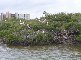 Barb and I relaxed from our very quick trip to N.S.B. (glad we brought our jackets for on the water comfort, you can always take it off, if you don’t have it, you can’t) and listened to a delightfully energetic and knowledgeable guide, and a very able Captain take us, and several couples and children too, on a critter watch tour around the average 4-foot deep, Mosquito Lagoon. The Mosquito Lagoon runs some, 160-miles along the east coast of Florida. We viewed feeding dolphins, and even one that was asleep on half of it’s brain, while being aware and up on its other side of the brain (remarkable split brain that’s 4-times larger than a humans) we saw all manner of wading and diving birds, a few loons, tons of brown pelicans and assorted other birds that rely on the fish and other prey critters of the Lagoon! See www.marinediscoverycenter.org (386)-428-4828