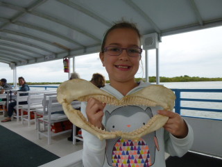 At the New Smyrna Beach, Antiques Mall, we found all kinds of fishing collectibles amidst things lost and found from a past American era. At a nearby gift shop Barb found colorful porcelain turtles that I love to decorate our waterfront home with. Then, after lunch at the Cork Screw Bar and Grill (see full story on this excellent year old restaurant in part 4 of our trip to N.S.B) we headed for an Eco- tour from the Marine Discovery Center, on the Dolphin Discovery Boat Tour.