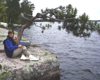 Barb knows how to wrestle with big bass too! This fish was caught in Northern California!!A great barbecue, I told Barb she had to be fast-that bullfrog had a very fast tongue!Barb and now gone Charlie the Dock Dog at Big Lake, MN. A favorite image of mine!!Barbs biggest catfish-a reel drag up from the bottom of a deep lake in GA.
