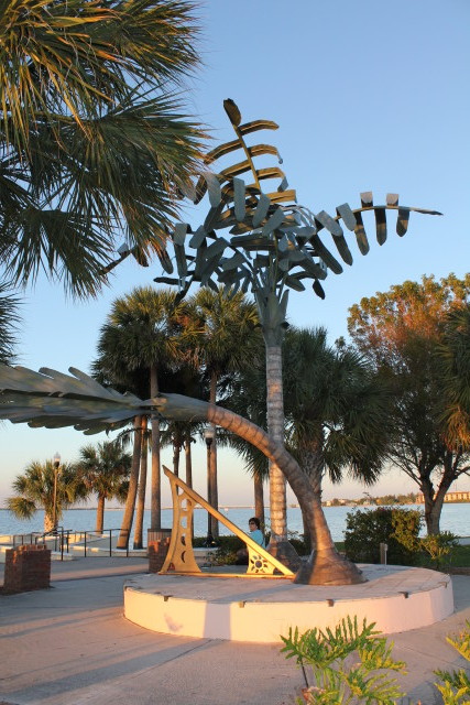 APtravelnews-April 6th,-Port Charlotte, FL. Bob and Barb “Stopping to Smell The Roses.” After hurricane Charlie devastated Punta Gorda, Gasparilla and Port Charlotte area to name a few, locals and snow birds alike chipped right in with “good heart” labor and dollars, to begin the process of recuperating their beloved area. The Spirit of Punta Gorda Sundial was summarily installed to commemorate, and in remembrance of what Hurricane Charley wreaked on this area of S.W. Florida. Artist Peggy McTeague planned the sculpture for installation at the edge of Charlotte Harbor leading into the Peace River in Laishley Park. The park is dog-friendly and parents and their children friendly, as well! Go: www.charlotteharbortravel.com for a wealth of information on how you too can visit and enjoy this special place in Florida!