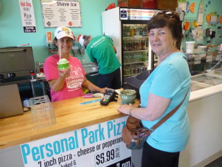 Sculpture of the remembrance of Hurricane Charley, that brought together many local residents to make it happen!We stopped in at “Ice Cream With a View, Harbor View SCOOPS AND BITES. The jury is in and this is the best ice cream ever. Located across the street from Laishley Park! I had my Pistachio and Barb jumped on Mint Choco Chip!
