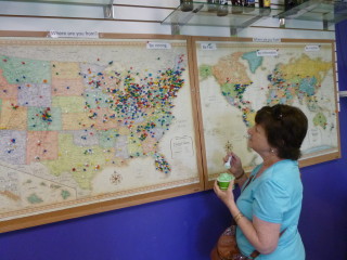 Young Athens caught a fish! He was so excited to catch a catfish, just steps away from the memorial sculpture.View from Laishley Park, Punta Gorda, and the ice cream shop! P.Charlotte and environs is water, water everywhere and that’s just great for visitors and locals alike!The pins in the maps represent visitors from the U.S. and the world that have visited Scoops and Bites ice cream shop and Laishley Park!