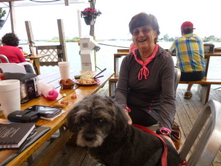 Bob and Barb with Terry at the Dolphin View Seafood Restaurant located at 107 N. Riverside Drive on the Mosquito Lagoon. One of the many pet friendly restaurants in New Smyrna Beach! We saw sea food and we all enjoyed it!