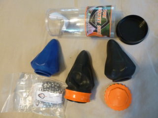 The six inch package comes with a bag of 100-steel balls, 3 pull-pocket shot rubber units, instructions, and shot bracket, bag holder. Included also are two more replacement units of different power pull strengths.