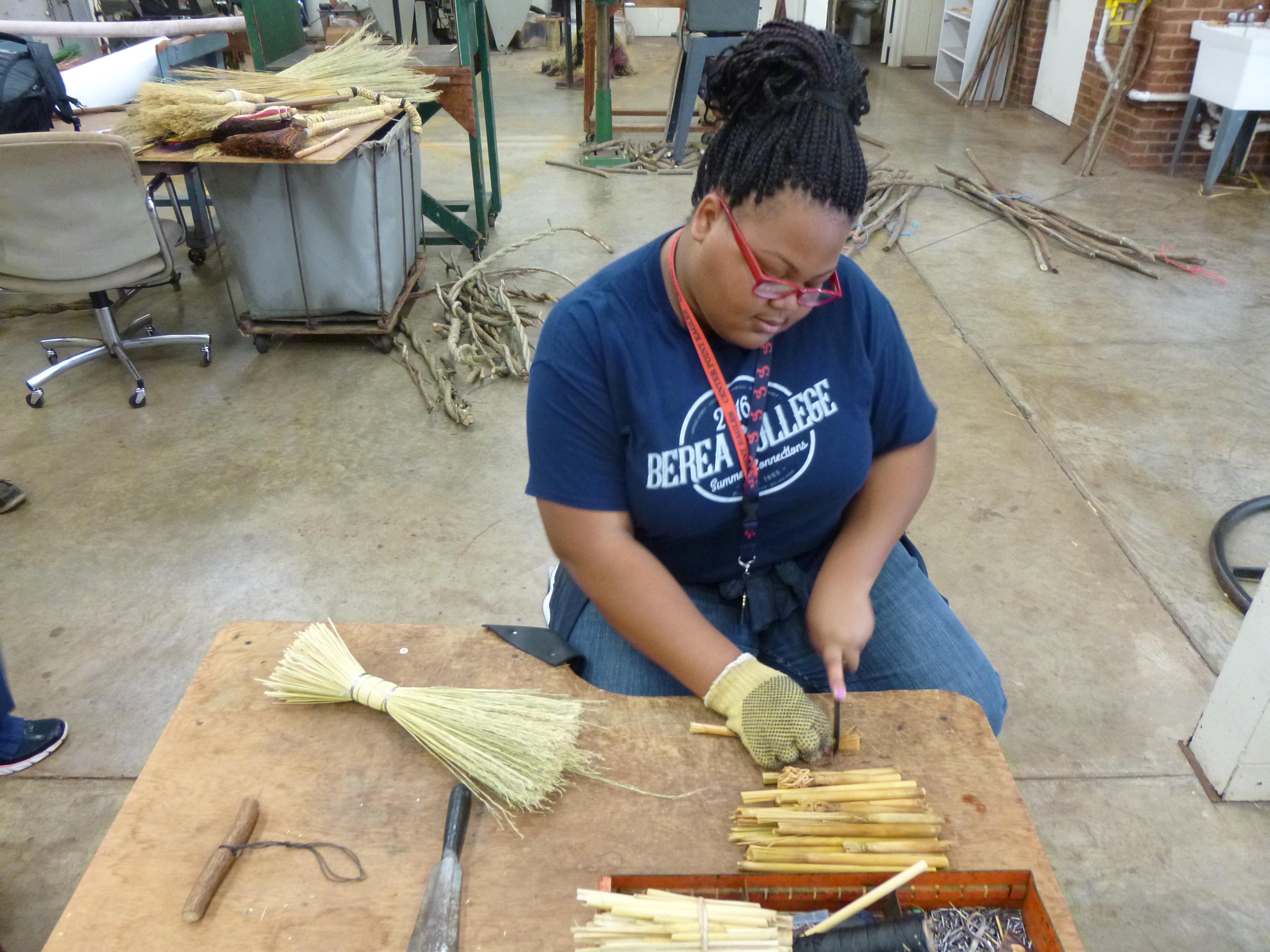 Broom making at Berea College by first year student learning a new, unusual craft!Bethany Butters, Potter! Makes delightful variations of all manner of pottery So many hand made brooms for so many sweeper needs!
