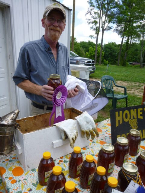 Jeff said that when he was a youngster he and his dad would raid old bee trees. They would “course” the bees flying to and fro, and follow their angles of flight. “We would triangulate where the hives were. I sure miss my dad, he got me into the Apiary profession, and I am what I am today due to his nurturing and teaching.” Jeff has passed his passion for the little liquid gold -makers in several ways. Besides teaching his son Tyler, he is a fixture at most outdoor special events.  This “sweet” guy teaches all who have interest, about the life of the bees and special nature they possess. He sets up a window case where people can watch the bees going about their daily lives supplying honey for their hives. Rainbow Gold Apiaries can be reached at (931) 484-9430. He can offer all hive products, offer his bees for pollination and does bee removal from anyone who needs this service at no charge!