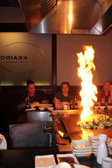 You can have lunch or regular dinner too. Its not just a Hibachi restaurant and the bar is stocked with everything you’d expect from a first-rate restaurant bar. I enjoy hot Saki rice wine and Barb enjoys a Zinfandel at least twice a week. We get this and so much more at Hokkaido!