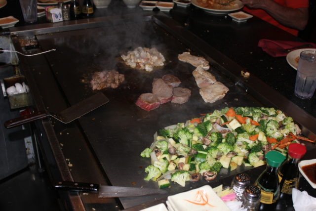 We just had an Hibachi experience that was unprecedented! Terrific fun at the counter as Subi the grill Cook/Chef did his magic with lobster, shrimp, beef and scallops (Barb and I had lobster and tender steak) from the mixed fresh veggies to the squirted Saki into the mouth by Subi and he flipping little hunks of veggies at peoples mouths ala throwing a fish to a seal, slapping the grill and flipping his spatula and knife everyone sat and enjoyed a spectacle of dining circus land. The filet mignon chunks were done medium just as I like it and we smiled as much as we chewed leaving an excellent dining experience for a change of pace dinner.