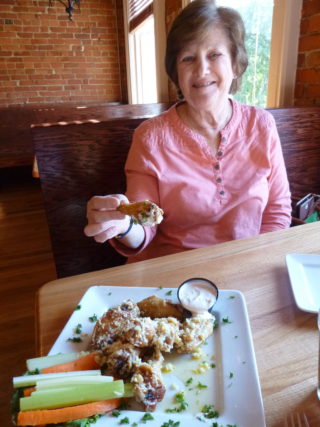 The Ellicottville Brewing Company has over 20 local and hard to find Craft BrewsThe EBC gives you a tasty generous portion of fish n’ chips.Garlic chicken wings! Barb and I had a finger-licking good time with these well done wings!More chicken, this time a bit spicy with peanuts, great noodles and a delicious sauce.