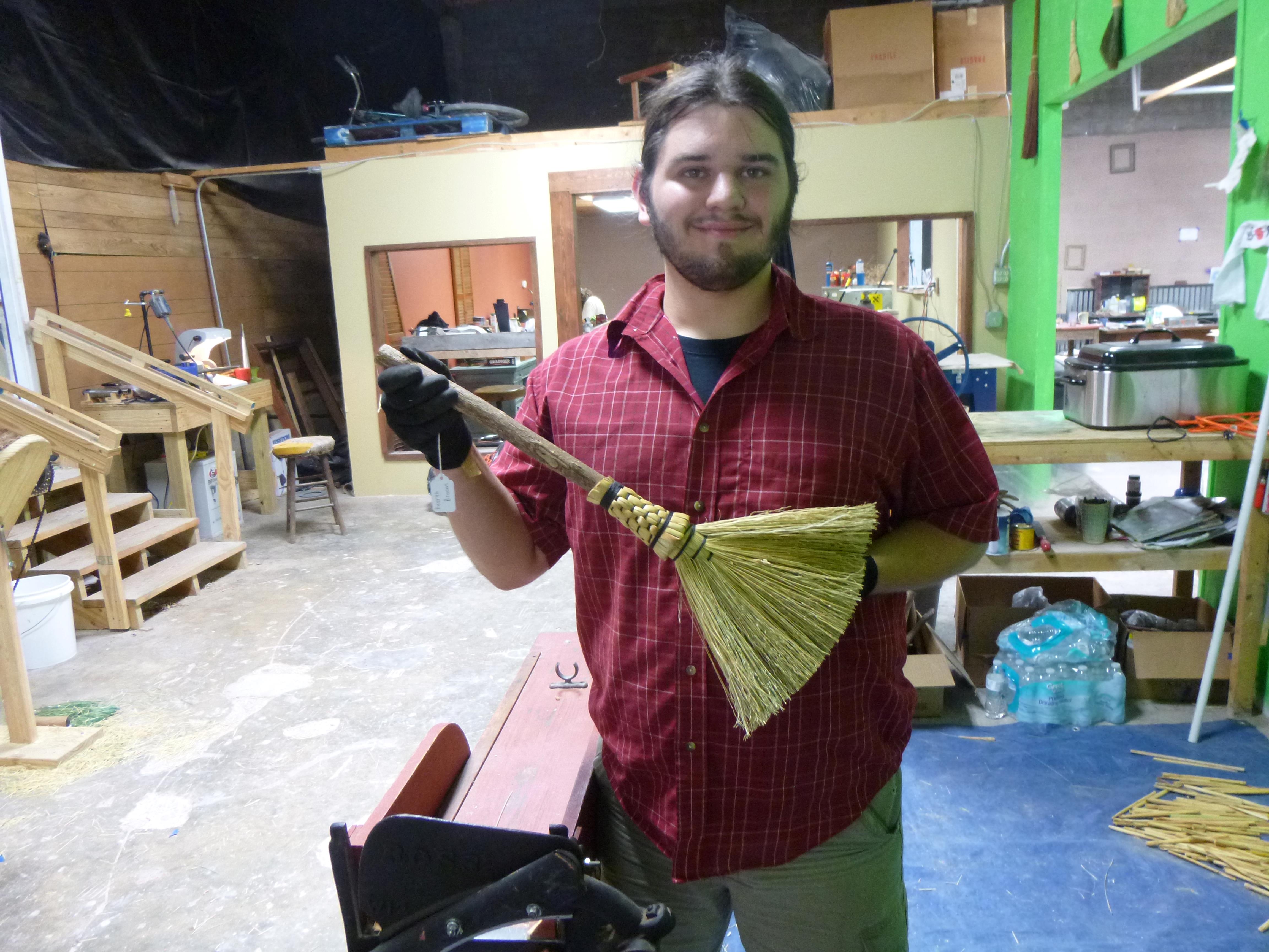Broom making at Berea College by first year student learning a new, unusual craft!Bethany Butters, Potter! Makes delightful variations of all manner of pottery So many hand made brooms for so many sweeper needs!