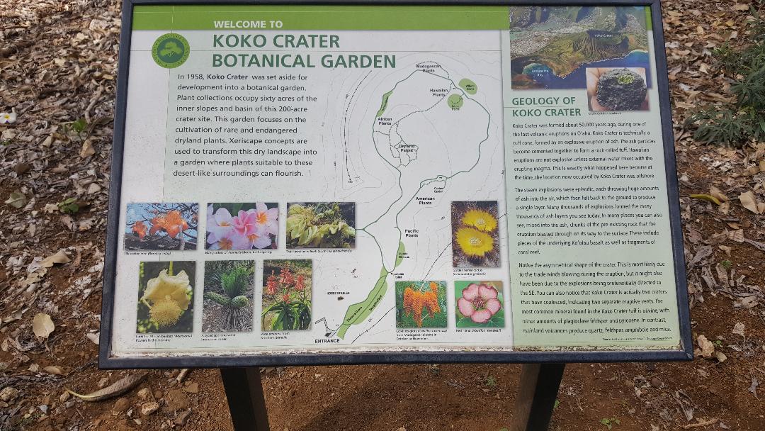 The Koko Crater Botanical Garden is located on the eastern end of Oahu, Hawaii. You will find four major collections which are organized by region (Africa, the Americas, Hawaii, Madagascar). In all there are around 500 trees comprising 200 species that you will see around the 2-mile-long loop trail.