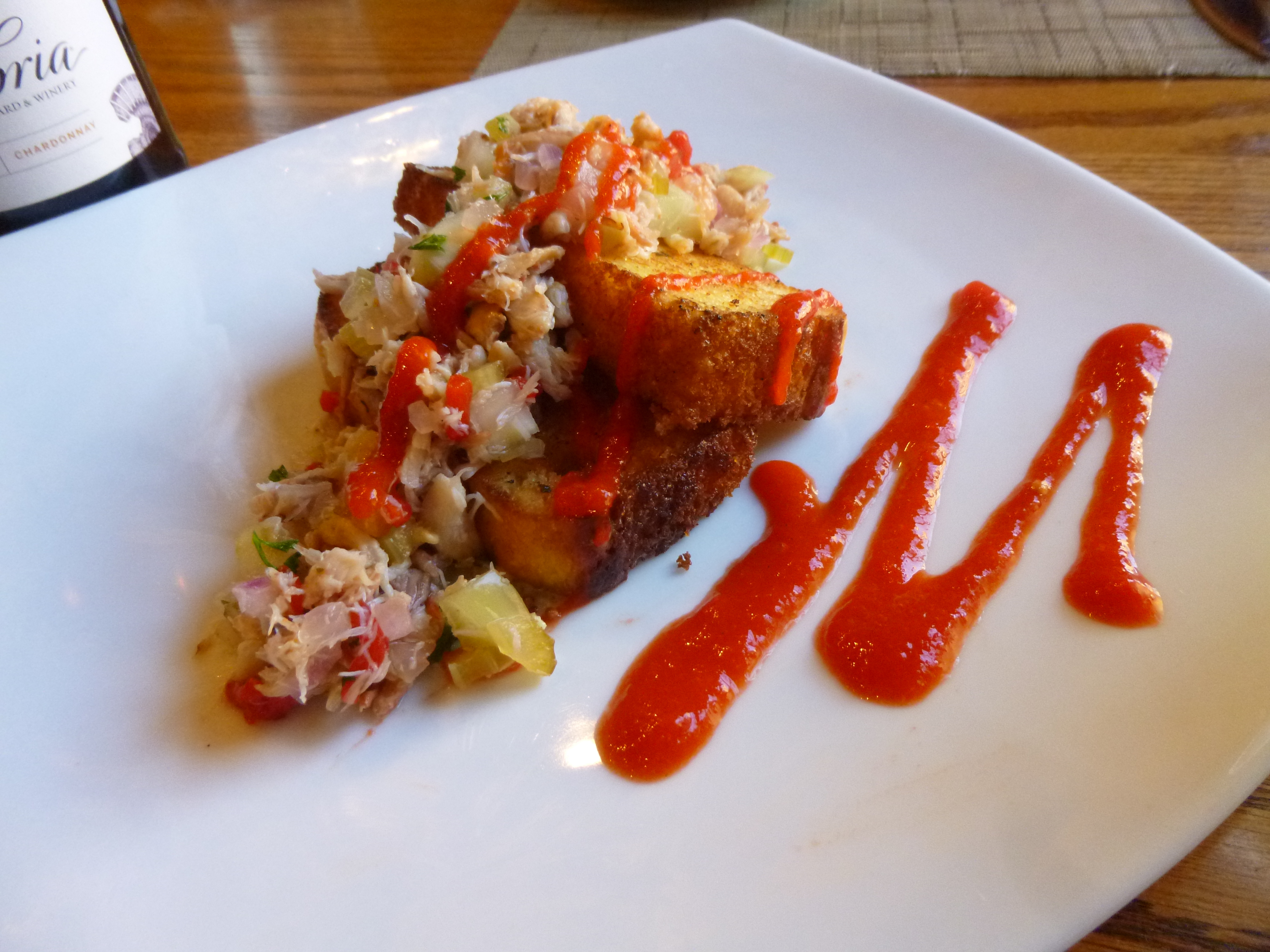 We both shared our meals and Barb and I felt it was a spectacular trout dish. We left nothing for the dishwasher!!The right hand man at the restaurant showed us the Cook Farms quail.Rockfish (Striped bass) dish was a special the evening we were at Harvest On Main!A specialty crab appetizer non pariel!