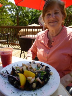 Paella, full of rice and seafood! A very good rendition of this Cuban dish!Gorgeous wall decor at the Fishery Restaurant!A snapper specialty! Fab tasting dish!Shrimp over a bed of crab cakes! So good, but I had to stop and take home a doggy bag for next days lunch too!From boat to pan at the Fishery!Back yard of the Fishery Restaurant. Come by boat or vehicle!