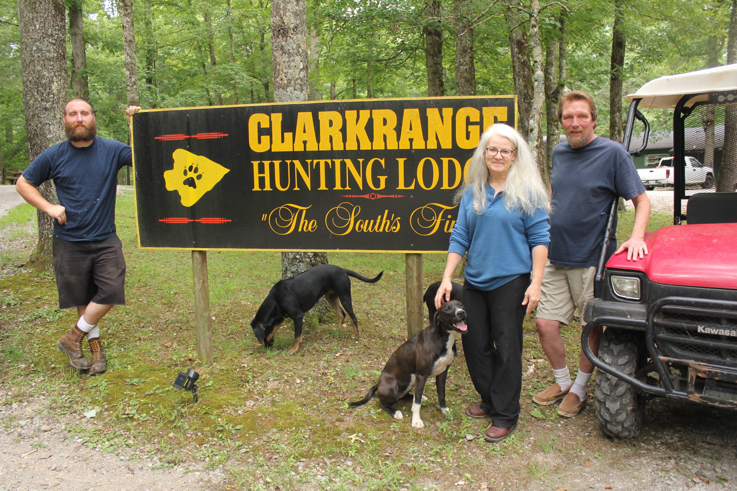 The family are happy campers since purchasing the lodge in September, 2016. “We knew we wanted to leave CA. so we made an RV out of a 1986 shuttle bus. The bus had a fine diesel engine, and no fancy electronics. We traveled all over looking for a place to land outside of CA. We wanted a rural, quiet place to spend our lives that had water, trees and hunting opportunities. So we coined the term: “Go east young man.” We finally found it here in Clark range. Just down the road from great service, and shopping in Crossville, great neighbors, plenty of room, and very happy hunters are our lot now”, said mom Sandy.