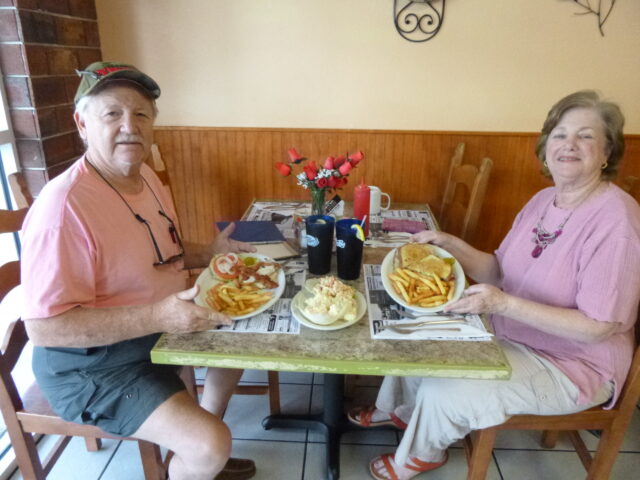 We’ve tried omelets for breakfast and today we went for lunch. We enjoyed everything from the macaroni and potato salads made daily, that complimented the Rueben and Chicken Special Sandwich with fries. Served on a Kaiser Roll, the marinated chicken breast slice had fresh pan bacon, cheese, fresh tomato slice bedded in a fresh lettuce leaf. With a drink and tasty fries, a great lunch for $8.95. The Rueben had tender (not that stingy tough sliced corned beef) slices of corned beef with hot sour kraut, Swiss, & 1000 Island Dressing on fresh rye. We like the friendly wait staff, and that a feeling you were back years ago, where your local diner offers fresh fare and lively banter. Want to be quiet and alone, fine! Want to strike-up a conversation, fine!