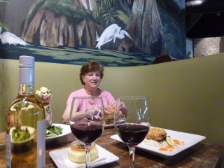 Bob and Barb with Terry at the Dolphin View Seafood Restaurant located at 107 N. Riverside Drive on the Mosquito Lagoon. One of the many pet friendly restaurants in New Smyrna Beach! We saw sea food and we all enjoyed it!Just one of Dolphin’s treats for lunch; stuffed mahi mahi with shrimp and crabmeat, oh, what a luncheon treat!