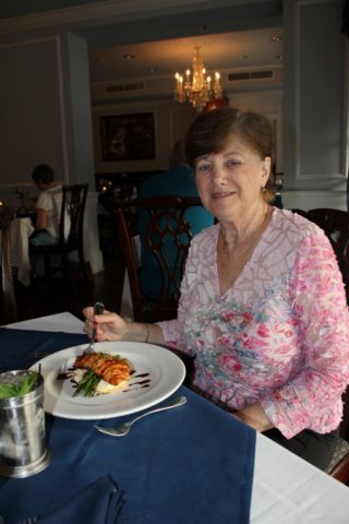 Barb is inher element! Great food, great surroundings and of course pretty good company too!Osso Bucco made with pork shanks, and mighty good and plenty! Tastes at Franks remind one of the best meals that momma and papa Leoni used to make in the early days of America.Yellowtail is a very delicate fleshed dish, few chefs get it exactly right. Franks gets it exactly right and then-some!First time I had blueberries embedded in Key Lime Pie. It was very special!