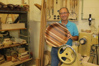 Barb about to enter the vintage as well as newly remodeled Historic Boone Tavern Hotel & restaurant at Berea College in Berea, KY.Tim Glotzbach, Director of the Student Crafts Program showing a student made turned giant bowl.