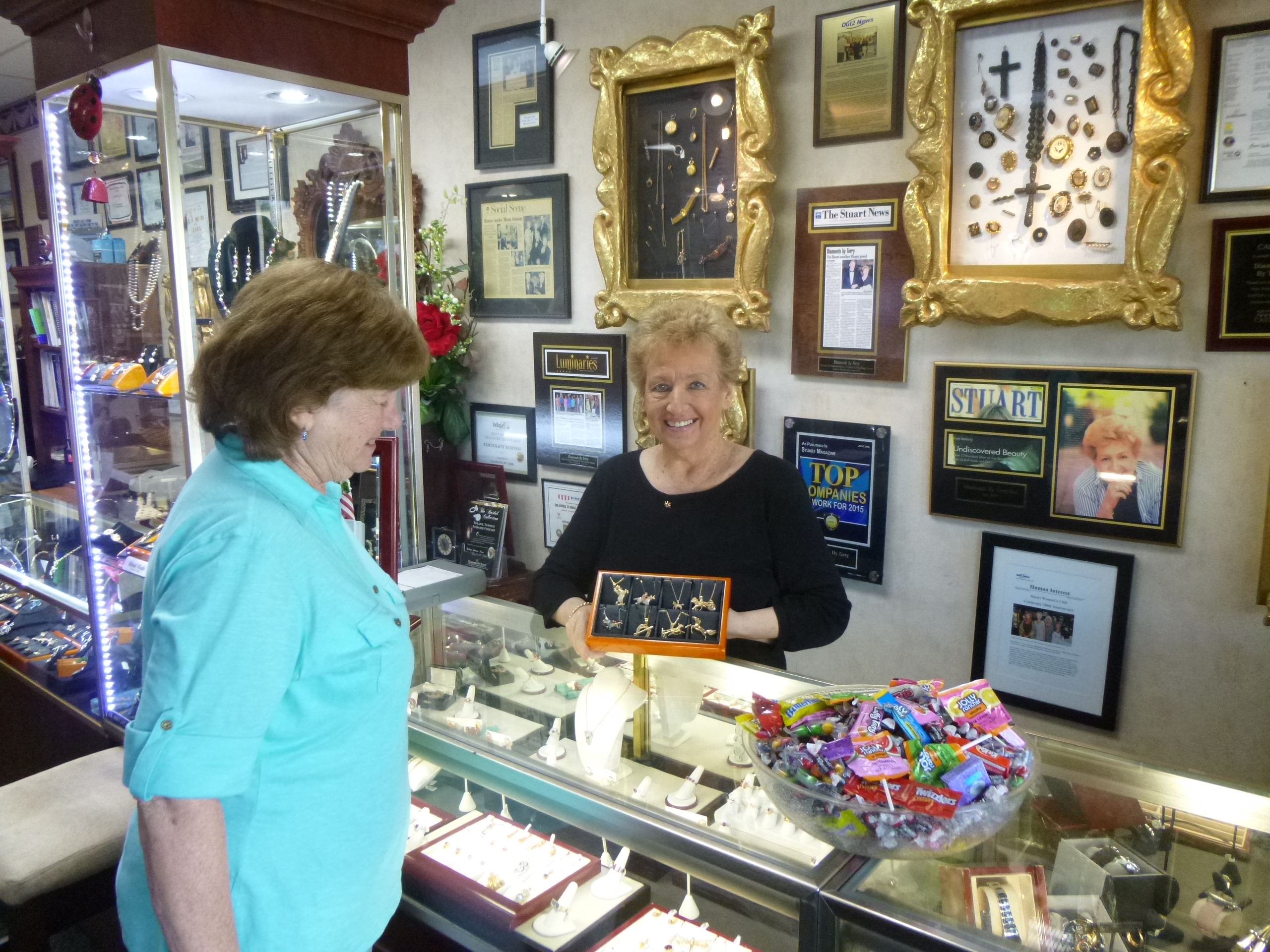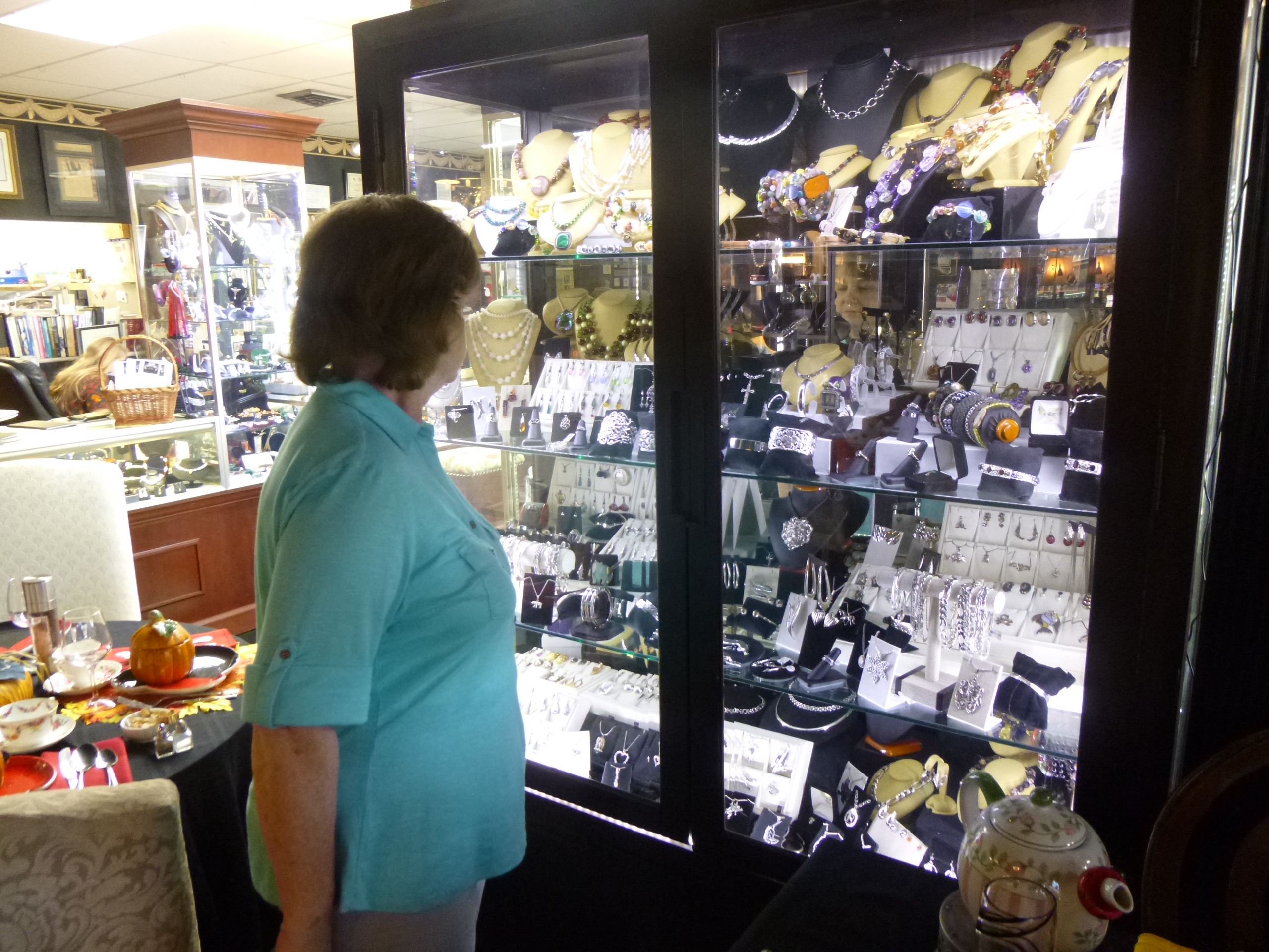 First off, the way to enter into, and leave the Tea Room & Bistro is through Diamonds By Terry Jewelry Store. After passing all the handmade, one- of- kind, gold and silver pieces crafted by Terry, you step into a beautifully appointed and decorated restaurant. Real themed table ware and cloths, teapots, and super comfy chairs, and get ready for a surprise. The surprise is their foods. Barb and I tried spectacular squash and broccoli soups, lobster cakes (lobster flown in from Maine, weekly) and a chicken Picatta. Fresh fruited sangria and peach tea. Of all the restaurants we dine out in (60-at last count in PSL, Ft. Pierce and Stuart) this amazing restaurant “took and gave the cake.” From the soups, salads, Tuscany bread, and the terrific personality of Terry, the owner, and Jewelry Manager Dea, we could not have been more pleased and happy! For dessert we had home made hot carrot cake and I slid my spoon into homemade Spumoni chock full of pistachio and cherries. On a 1-10 this tea room was a 20!