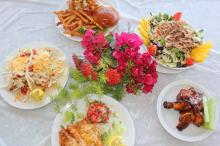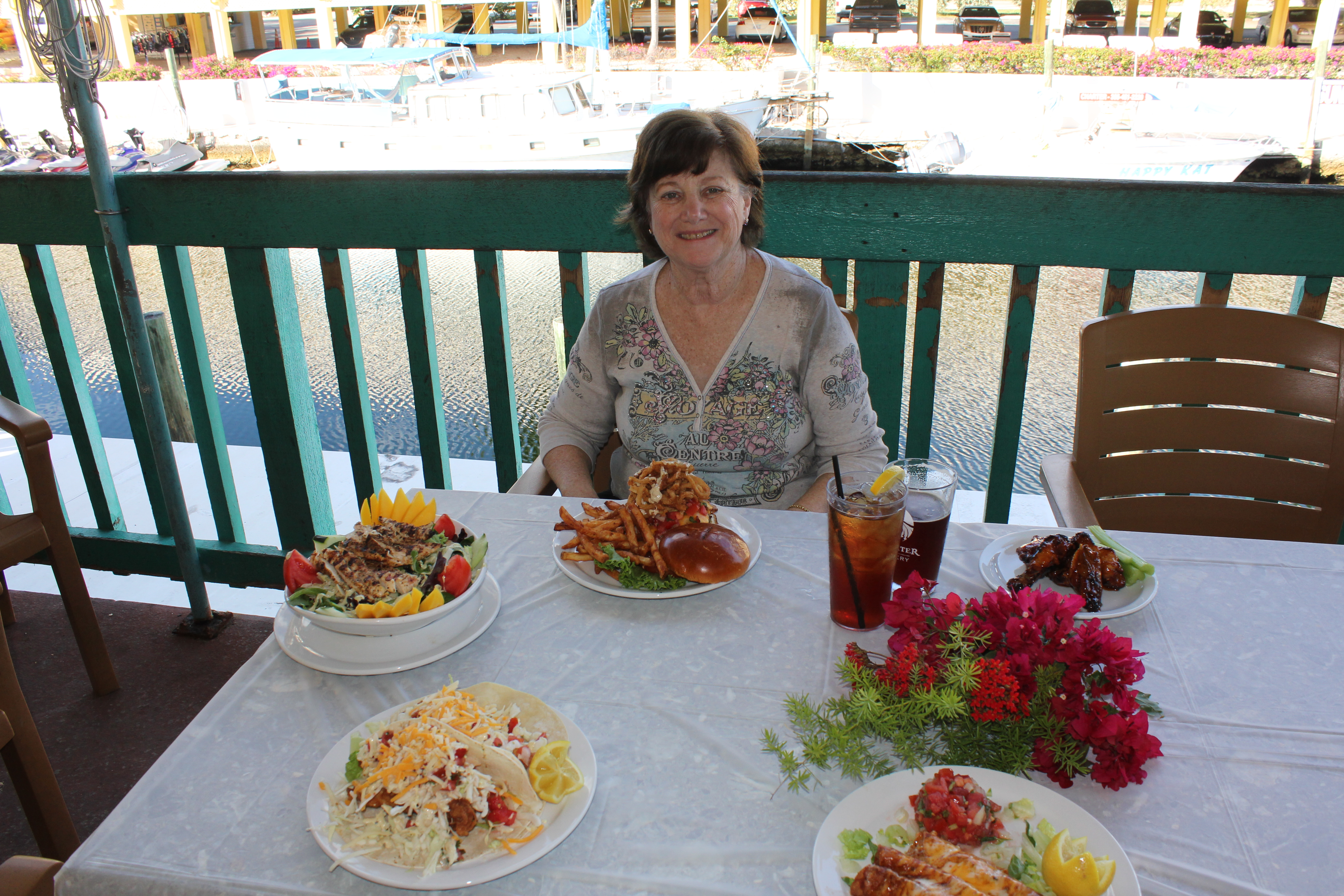 AmericanPressTravelNews–Jan. 21st, Key Largo-Bob and Barb “Stopping to Smell the Roses, Flowers and great foods at Sharkey”s. We first visited the downstairs pub section of active conviviality on the canal, had a beer, chatted with a a few visitors who were on vacation and deeply involved in all things, diving. Heading upstairs overlooking a variety of sailing and power craft in the channel coming and going and moored as well, we ordered a few things from Sharkey’s voluminous menu. All manner of different ethnic dishes as well as the ubiquitous burgers, wings, seafood’s beside the large number of salads, there were chicken enchiladas, seered fishes, tuna items, mahi, and the shrimp-WOW, Sharkey’s knows how to prepare them any way imaginable. To say we liked Sharkey’s would be a large understatement! We loved Sharkey’s!